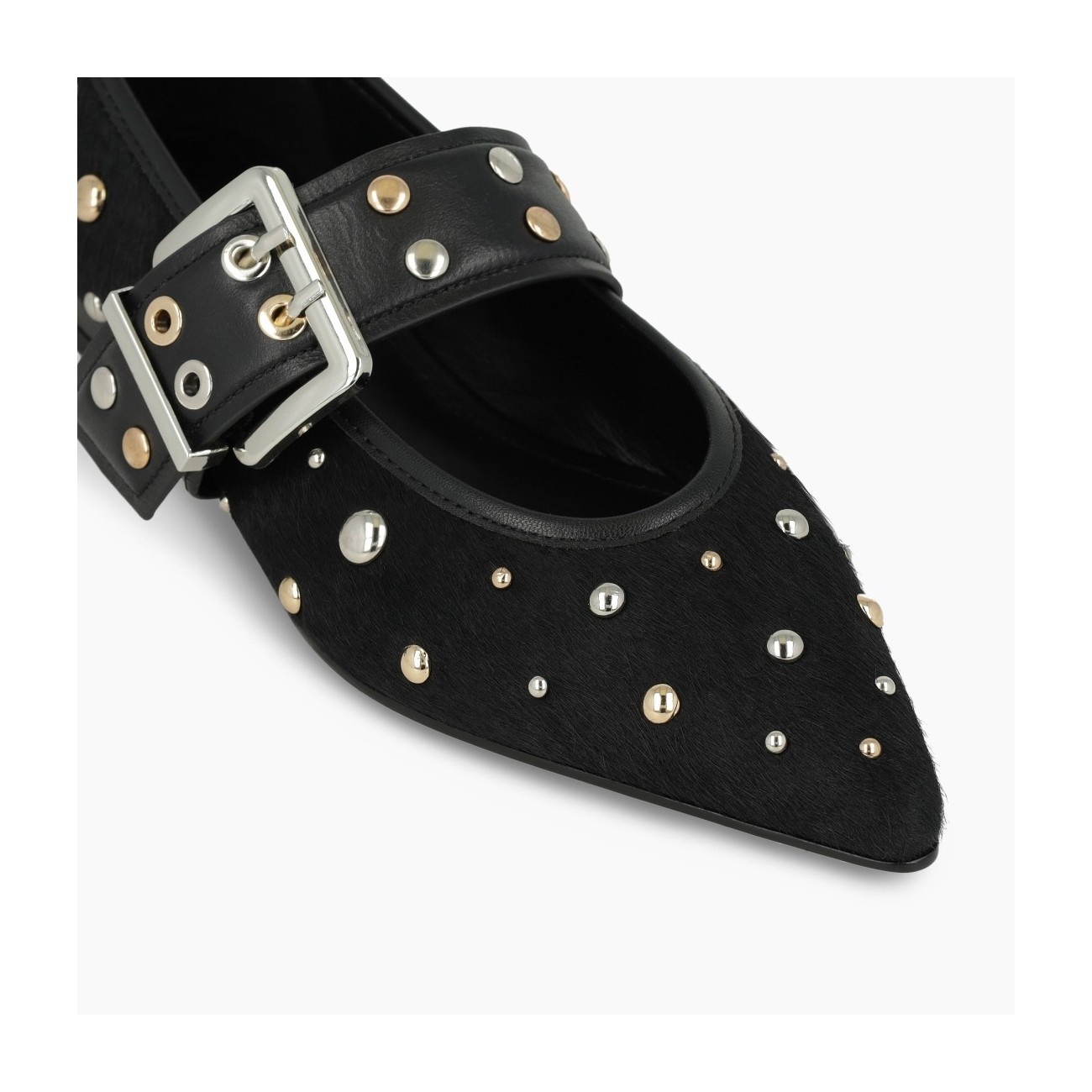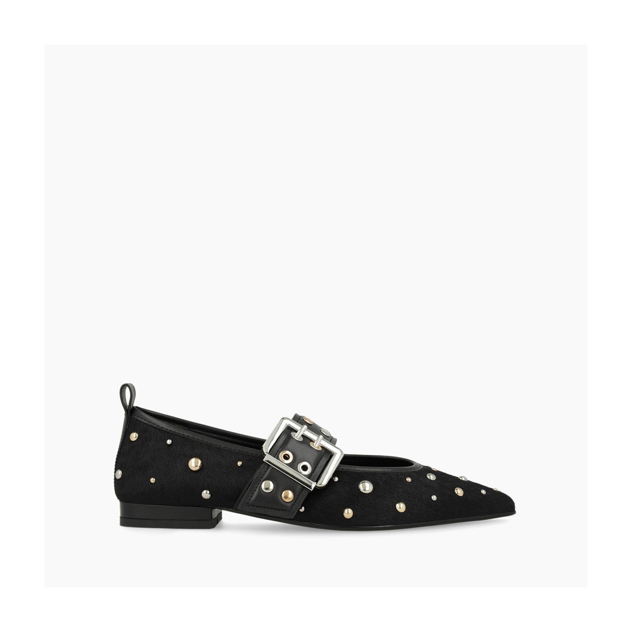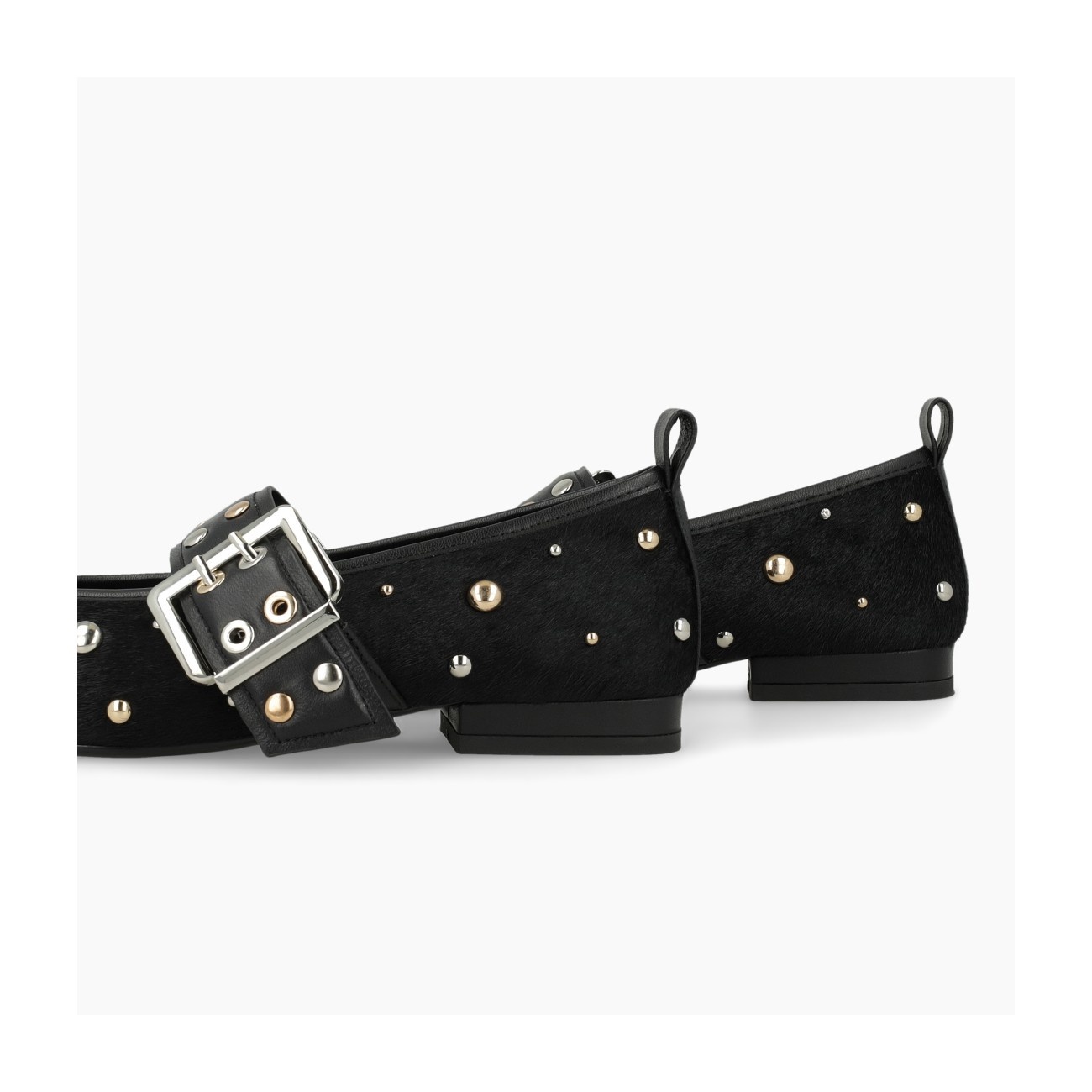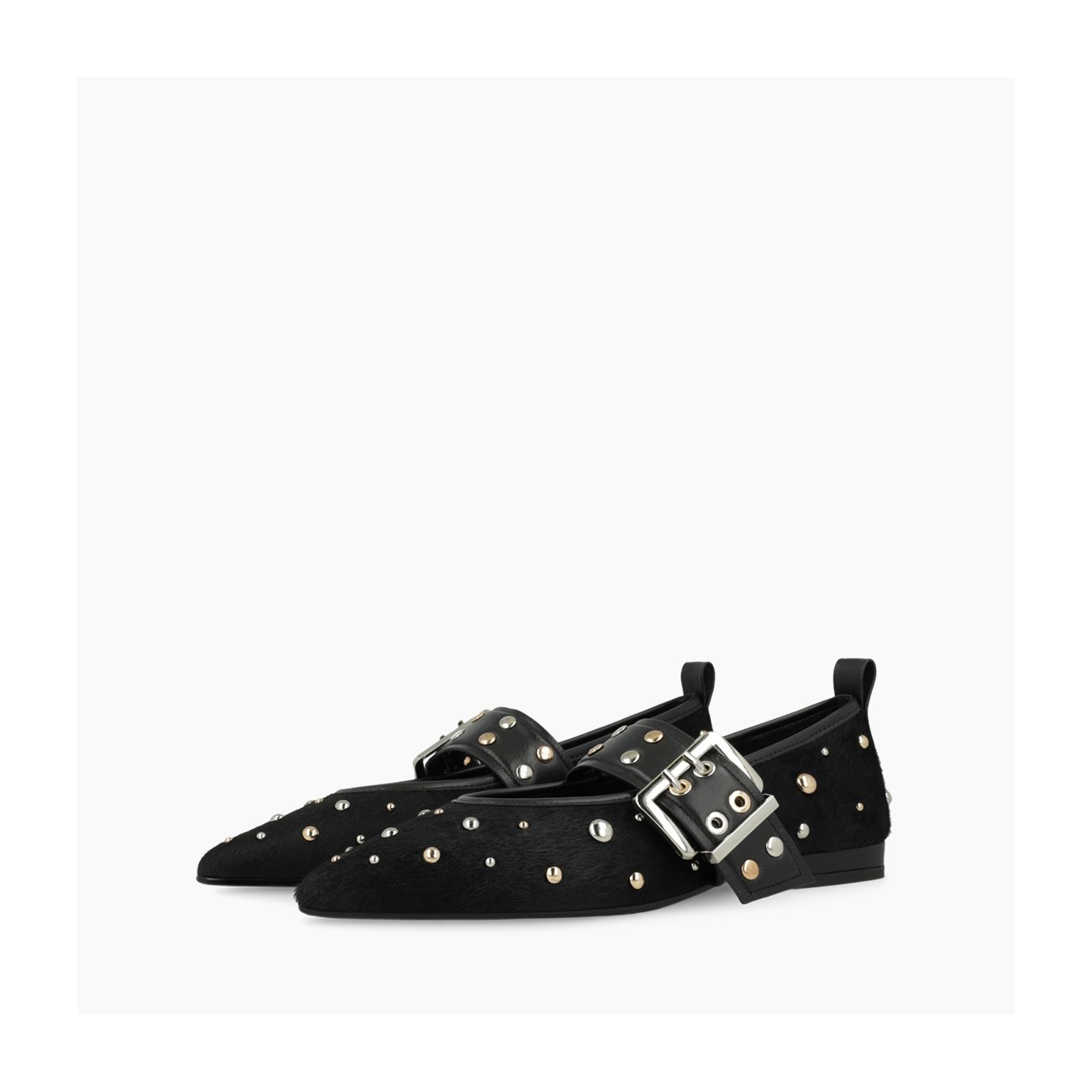 Women´s ballerinas by LODI in leather with hair effect finish. Studded design with buckled strap across the instep, adding personality without sacrificing comfort. 1.5 cm heel height. Pointed toe. Leather-lined interior. Includes new gel insole for greater comfort in every step. Made in Spain.