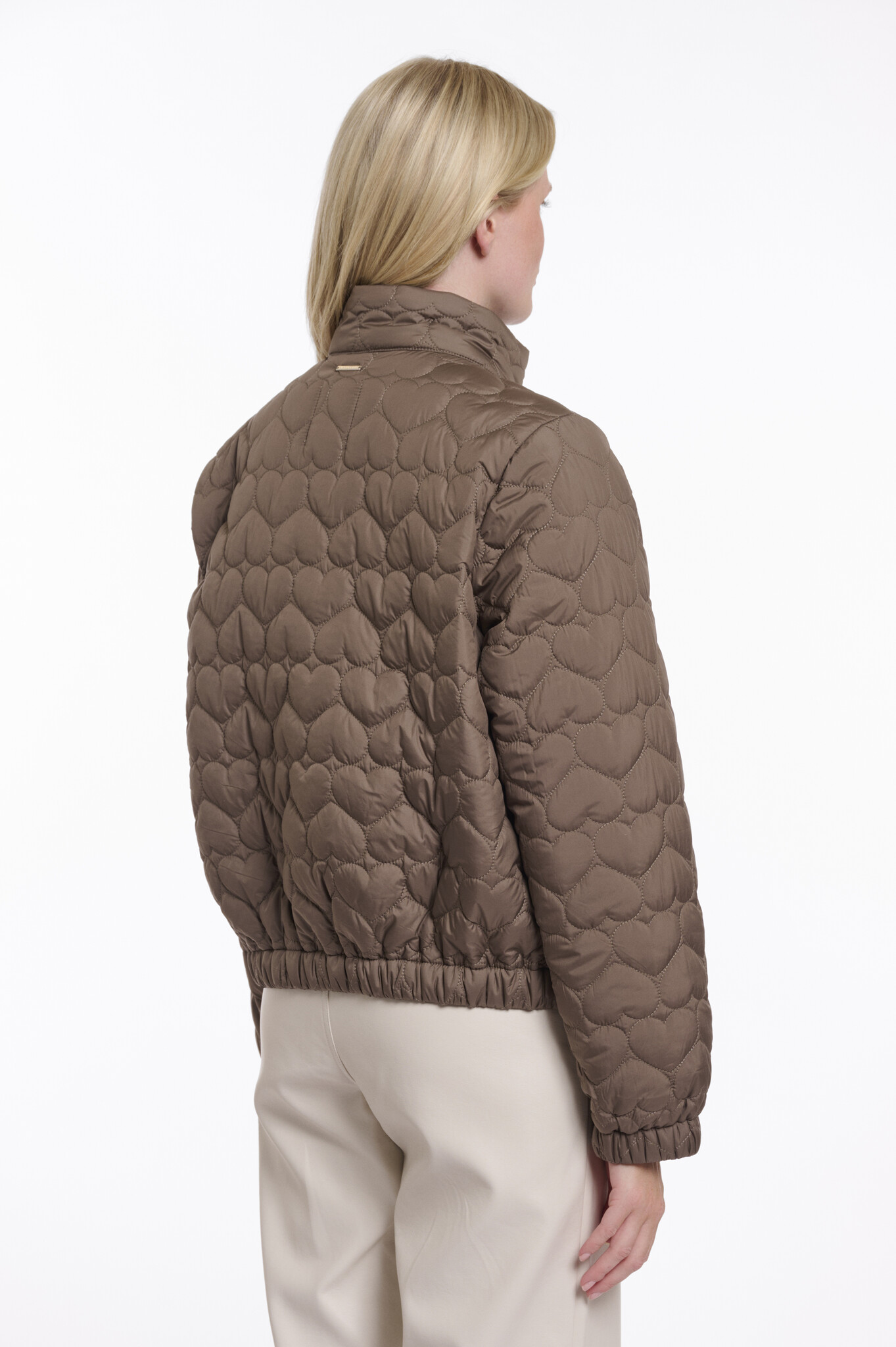 Wrap yourself in understated elegance with this lightly padded jacket, designed in a refined silhouette with delicate quilted detailing. The smooth finish and heart-shaped stitching add a subtle feminine touch, while the elasticated hem and cuffs keep the wind out for extra comfort. Finished with a sleek button closure, it’s the perfect layer to elevate your everyday look.