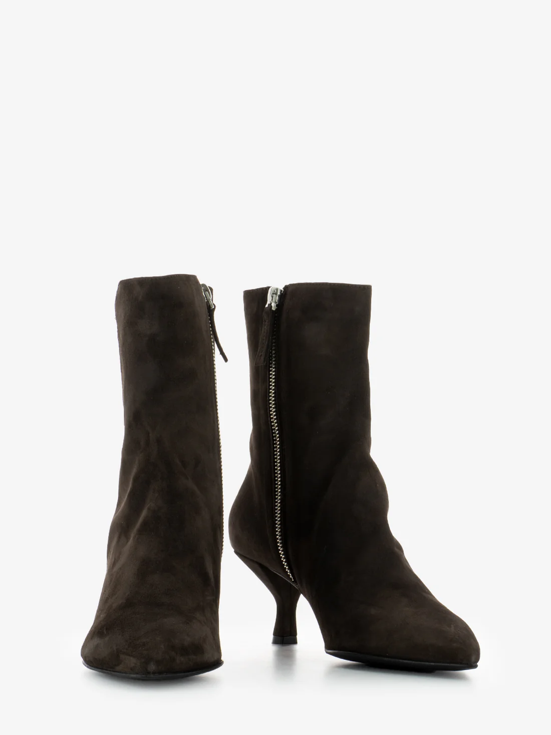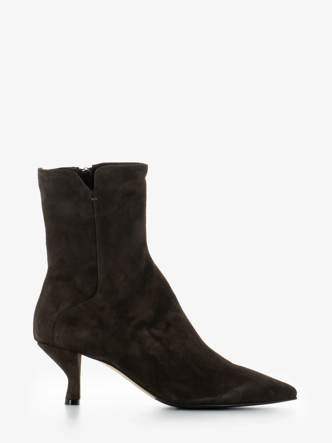 Pointed suede ankle boot with side zip, designed by Pomme D'Or.
