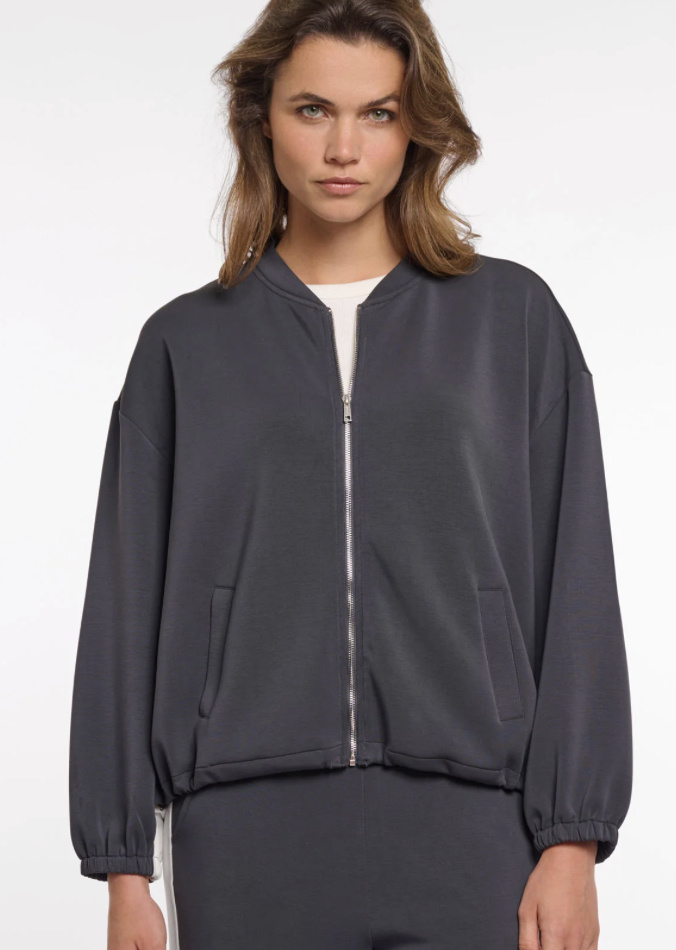 Wrap yourself in everyday elegance with this clean, bomber-inspired jacket crafted from a softly structured fabric for a smooth, refined drape. Designed with a slim stand collar, front zip closure, and discreet slip pockets, it offers a modern yet effortl