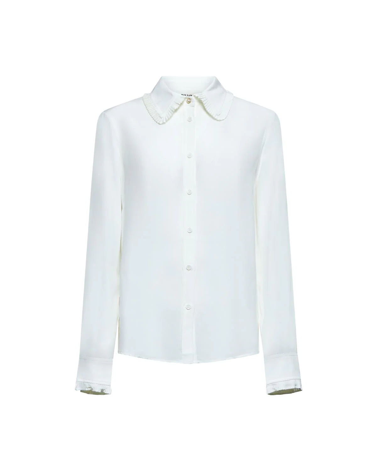 A romantic touch for everyday wardrobe. This classic cut shirt is embellished with a decorated collar, ideal for giving light to even the simplest looks. To be worn with tailored trousers or high-waisted denim.