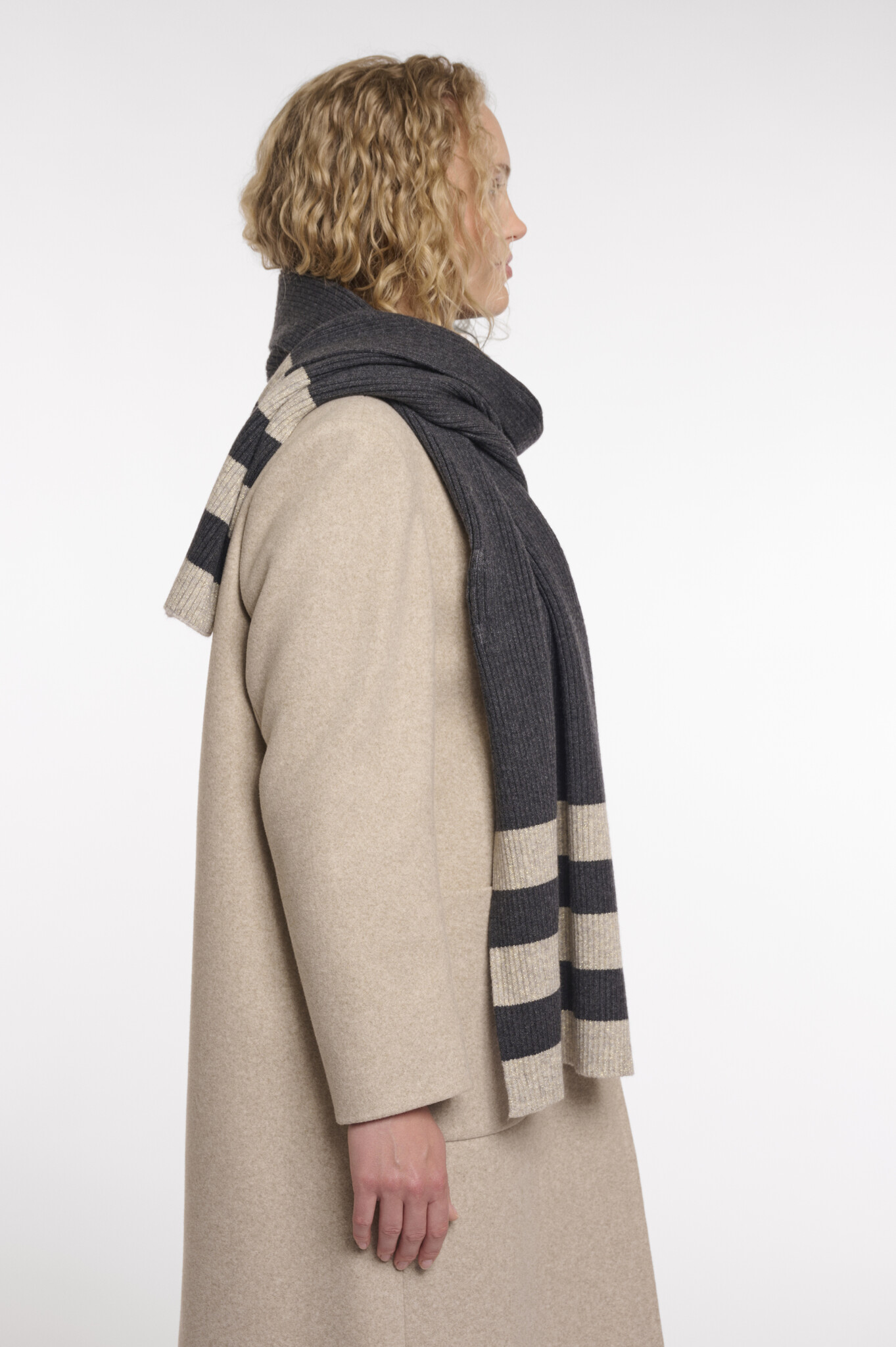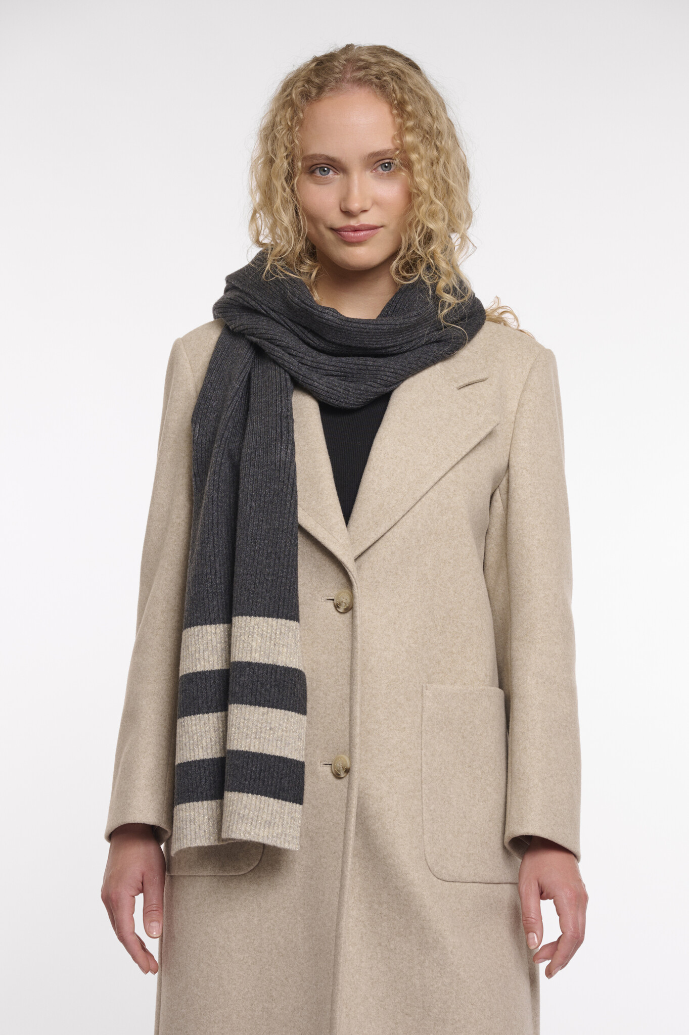 Prepare to be enveloped in warmth and undeniable style with this must-have accessory. The luxurious knitted texture with metallic fibre is incredibly pleasing to the touch, adding a touch of cozy elegance to any outfit.