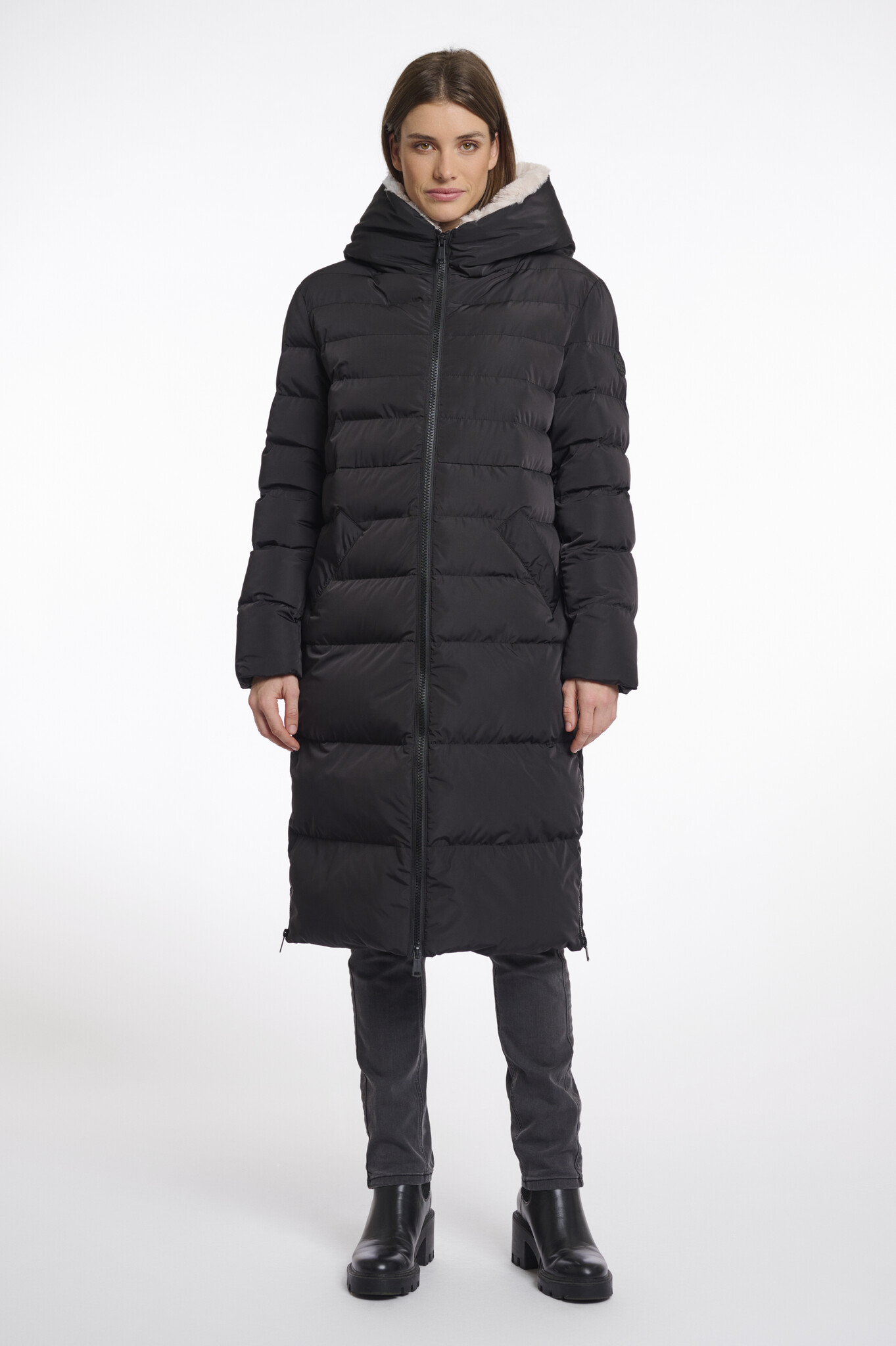 This Keila coat is perfect for keeping you warm during these chilly months, thanks to its faux-fur lining. This padded winter coat features a design with zipper closure, two front pockets with snap button closure and a high neck collar with hood. This coat also includes slit zipper details on both sides, allowing you to move freely while keeping you warm. A musthave coat!