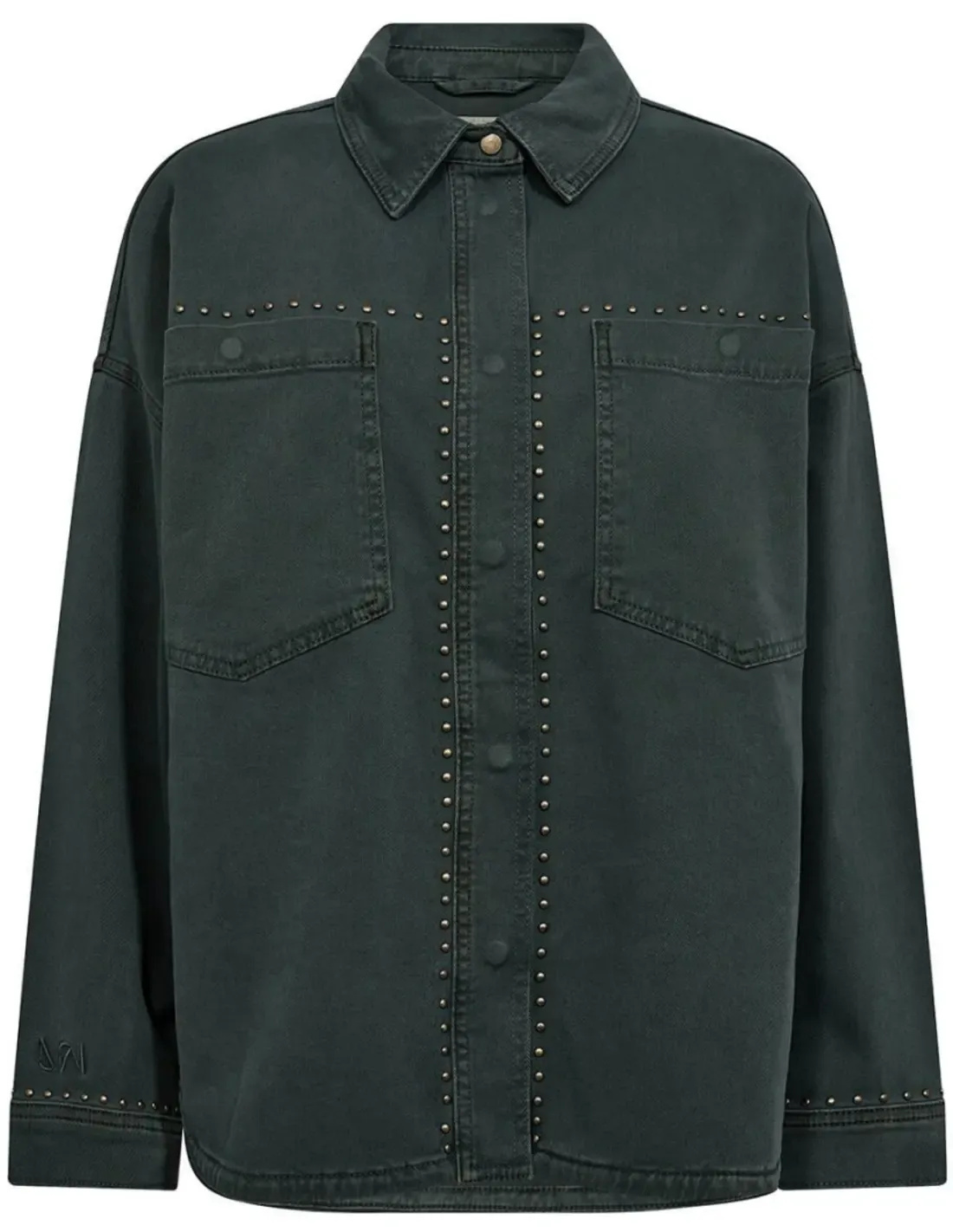 This shirt has a classic collar with button closure, which creates a refined and timeless look. The striking studs on the front and back give the shirt blouse a druffed statement-like touch. It is very versatile and stylish, and an ideal choice to accentuate both casual and formal outfits.