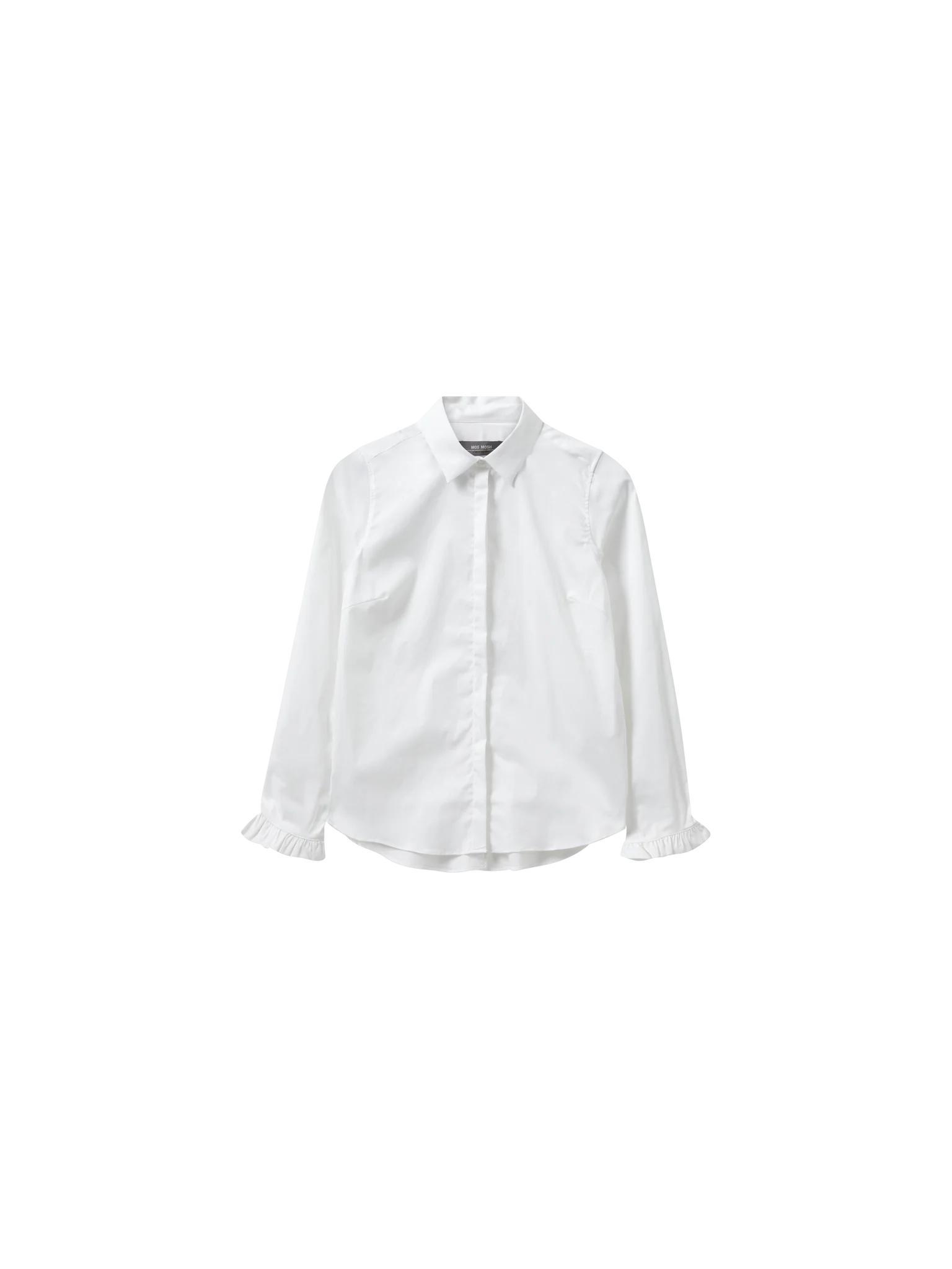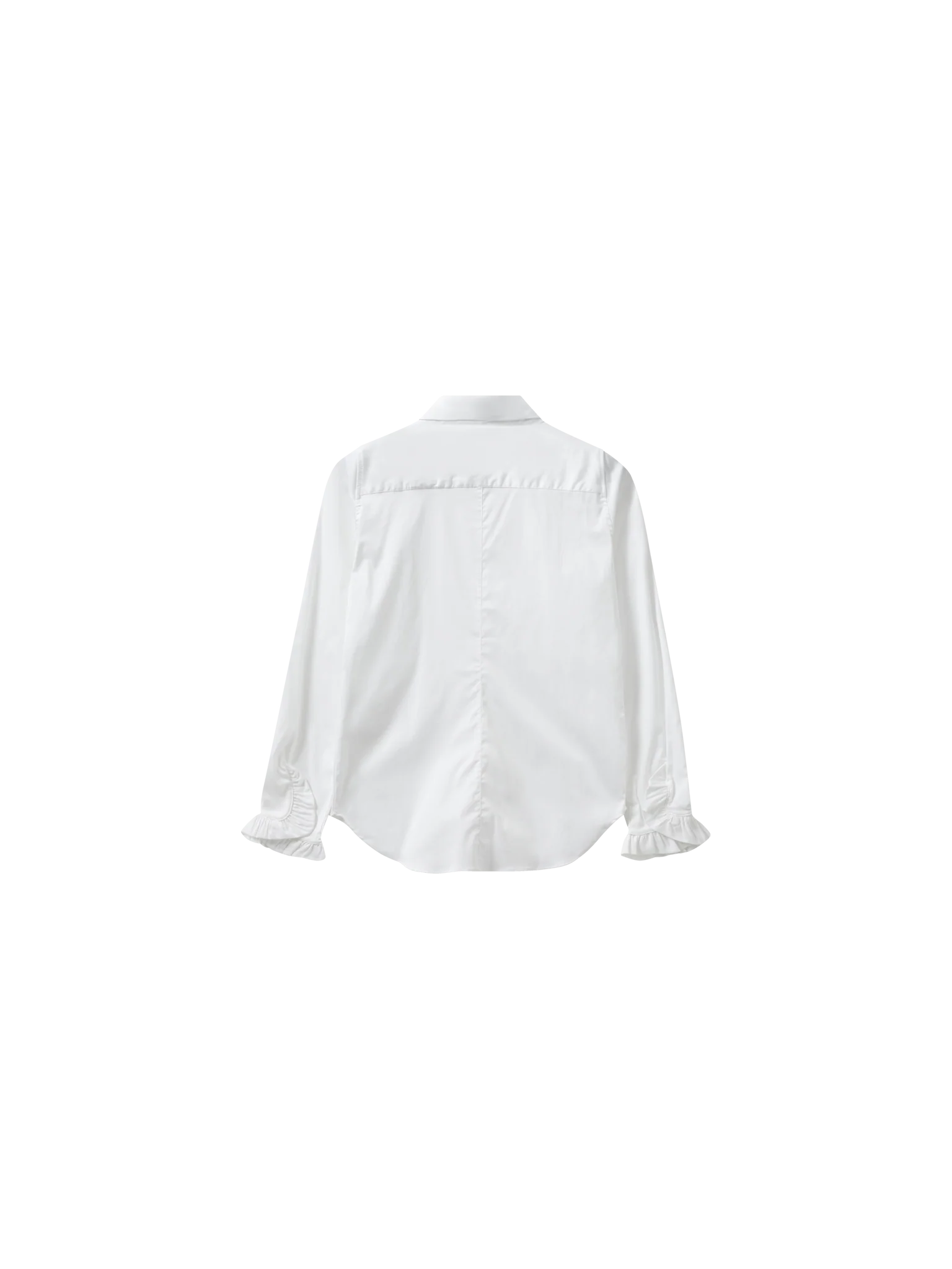 Looking to add a feminine touch to your outfit? Cut in a flattering slim fit, crafted in the softest stretchy fabric with a classic collar, feminine ruffled cuffs, and classic button closure. Style it with tailoring and let the ruffled cuff peep out from the sleeves.