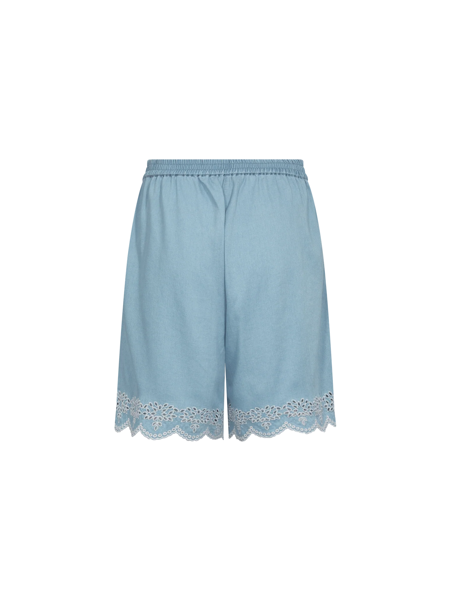 These soft shorts feature an elasticated waist and a loose, wide-leg fit. Delicate embroidery along the hem adds a feminine touch, while the lightweight fabric ensures all-day comfort. Perfect for relaxed summer looks.