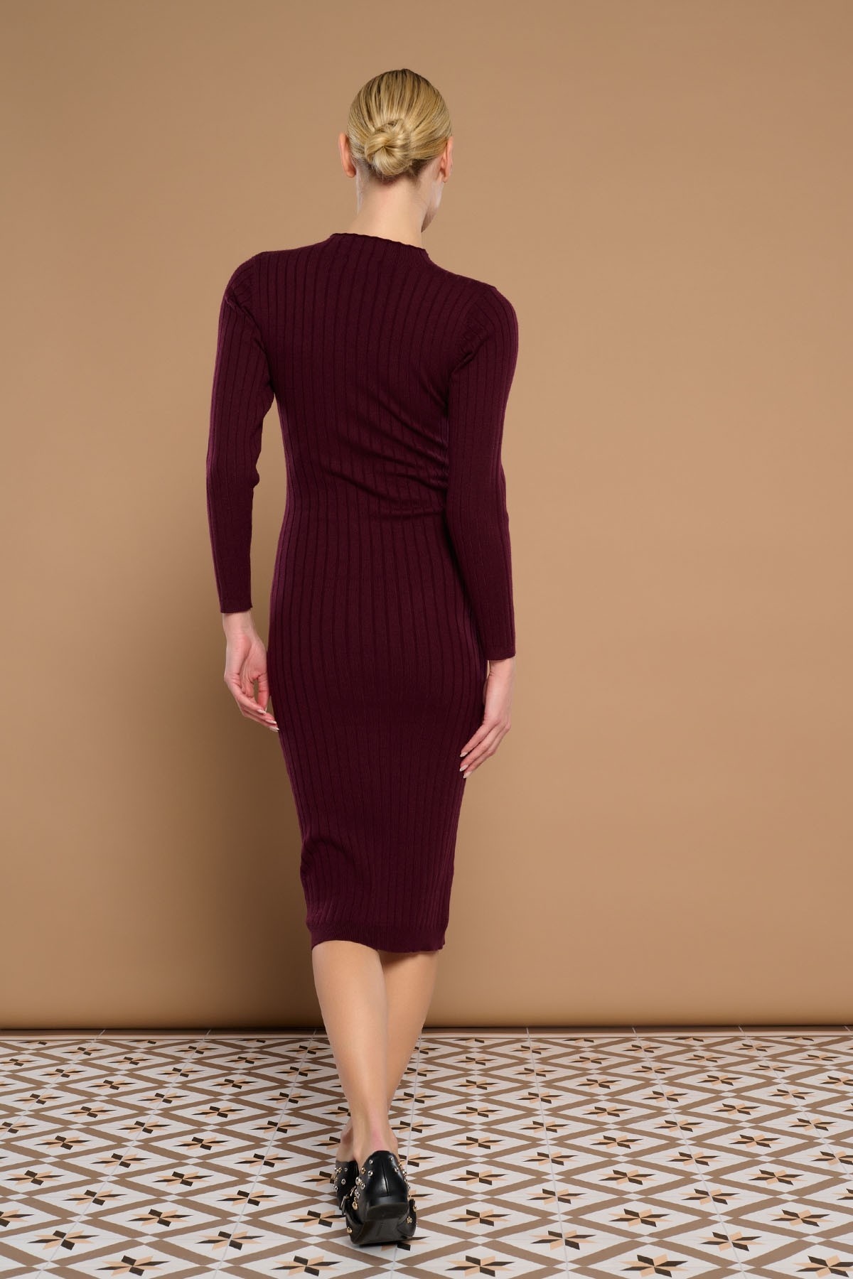 Elastic knit midi dress. Bodycon. Detail of golden buttons on shoulders.