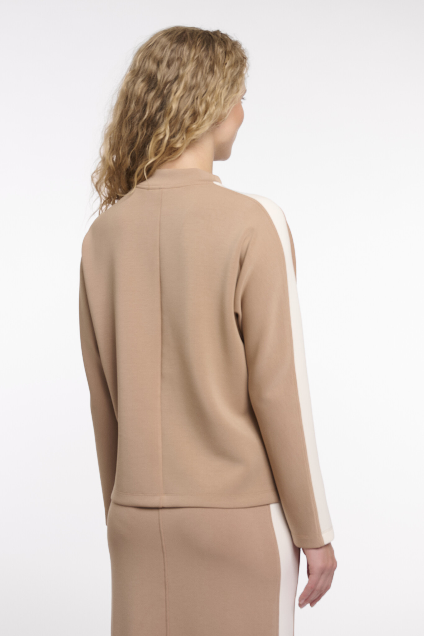Wrap yourself in modern minimalism with this soft sweatshirt-style pullover, designed with a slightly raised collar and a relaxed, comfortable fit. Unique seam detailing and a bold stripe along the sleeve add a distinctive, contemporary edge. Crafted from smooth, supple fabric, it offers an elevated take on everyday ease.