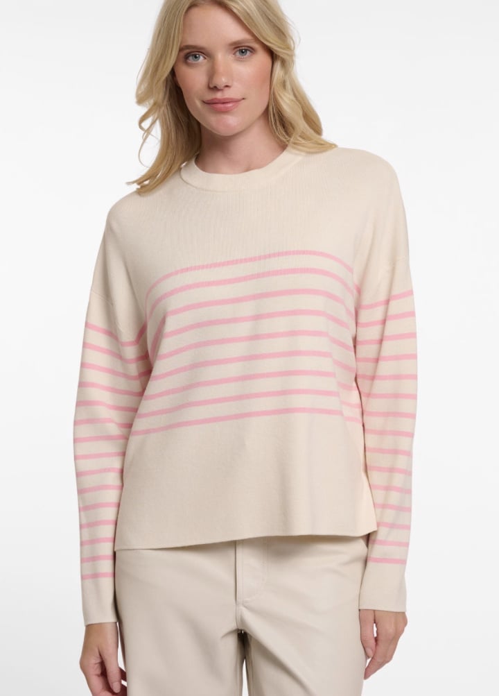 A timeless essential, this lightweight striped sweater is crafted from a soft, fine viscose blend for a smooth and comfortable feel. Designed in a relaxed fit, it drapes effortlessly while the classic horizontal stripes add a subtle Parisian charm.